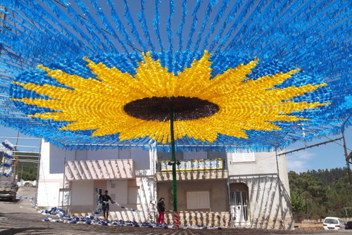 Acaba de ficar completamente montado o maior girassol do mundo feito com flores de plástico, desta vez em versão light 2013